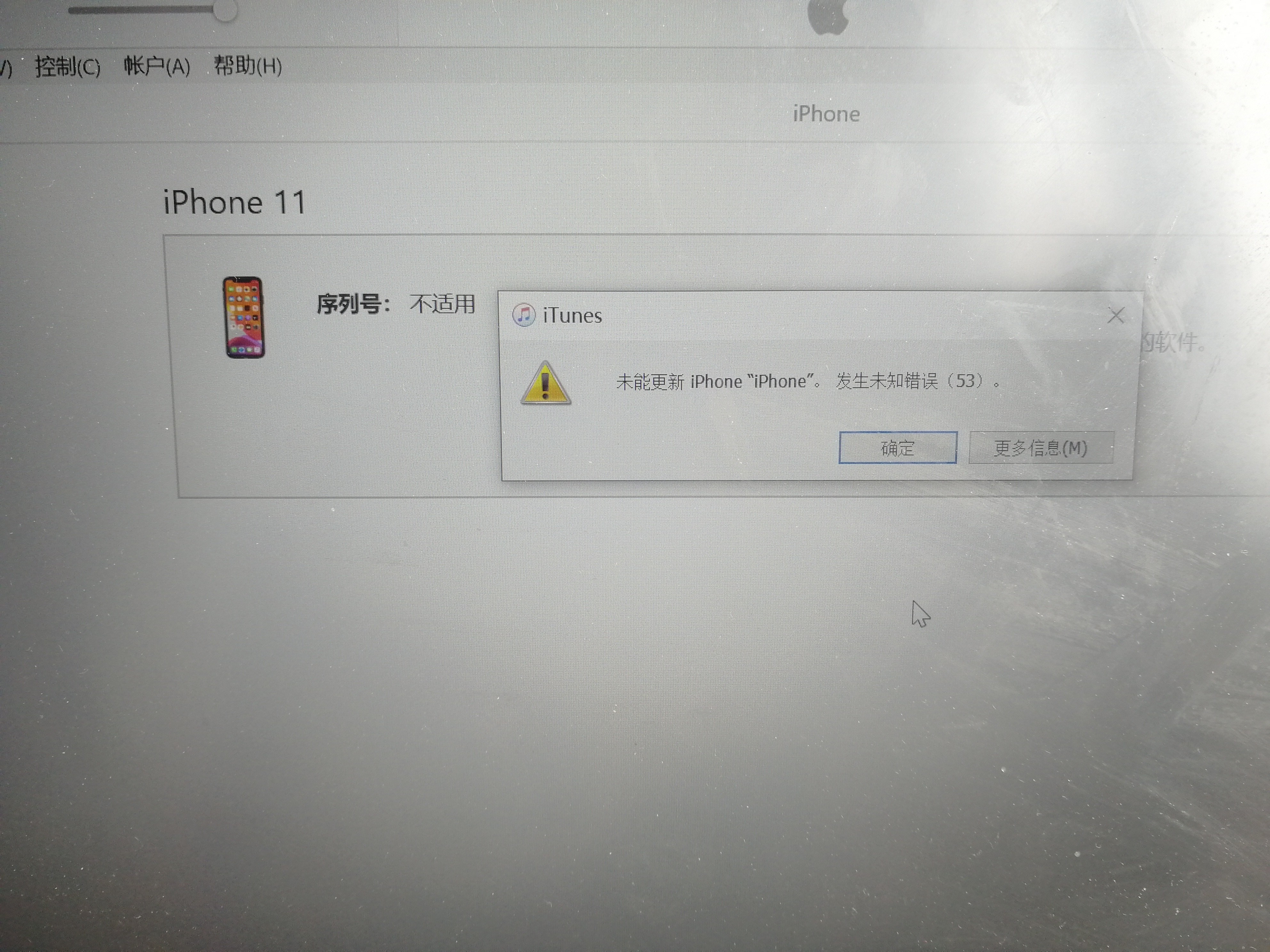 苹果11用Itunes升级时出现无法升级和恢复