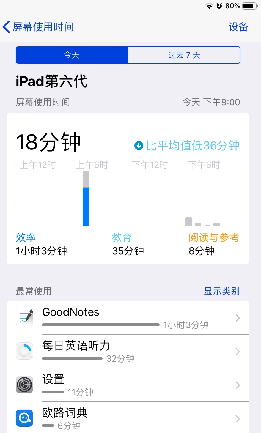 同一iPad(第六代)屏幕使用时间为何显示不一致