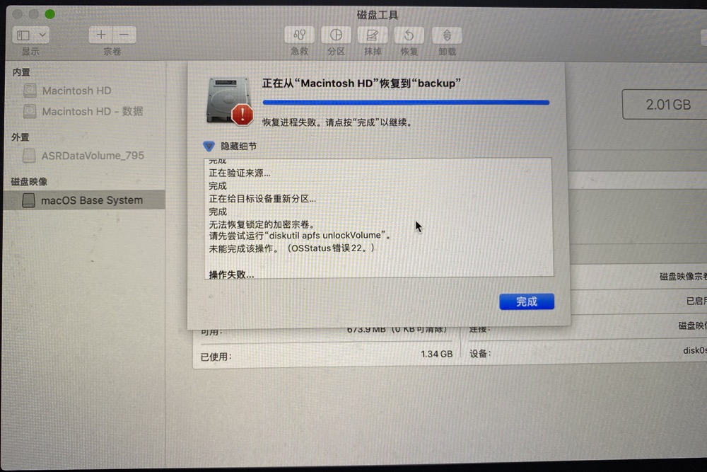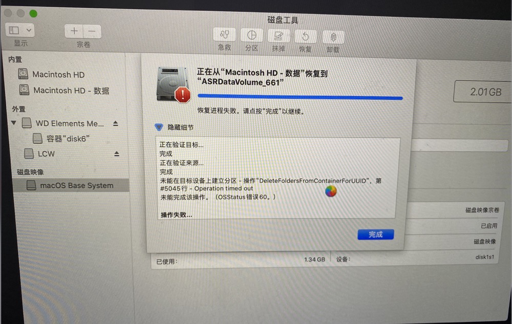 尝试过直接擦除卷宗(擦除失败)、直接删除APFS卷宗(删除失败)、擦除容器等,均以失败告终,如下图所示: