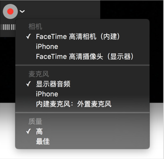 可以通过QuickTime player 来实现,设备连接到Mac 打开QuickTime player选取“文件”>“新建影片录制”相机选择iPhone