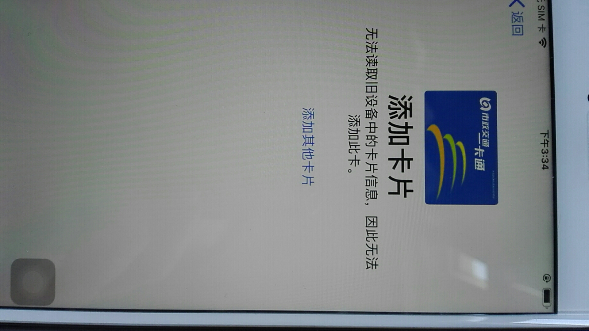 手机还原初始化以后,ApplePay中添加之前的北京公交一卡通,提示“无法读取旧设备中的卡片信息,因此无法添加此卡片”,AppleID正常登陆,卡里还有余额。