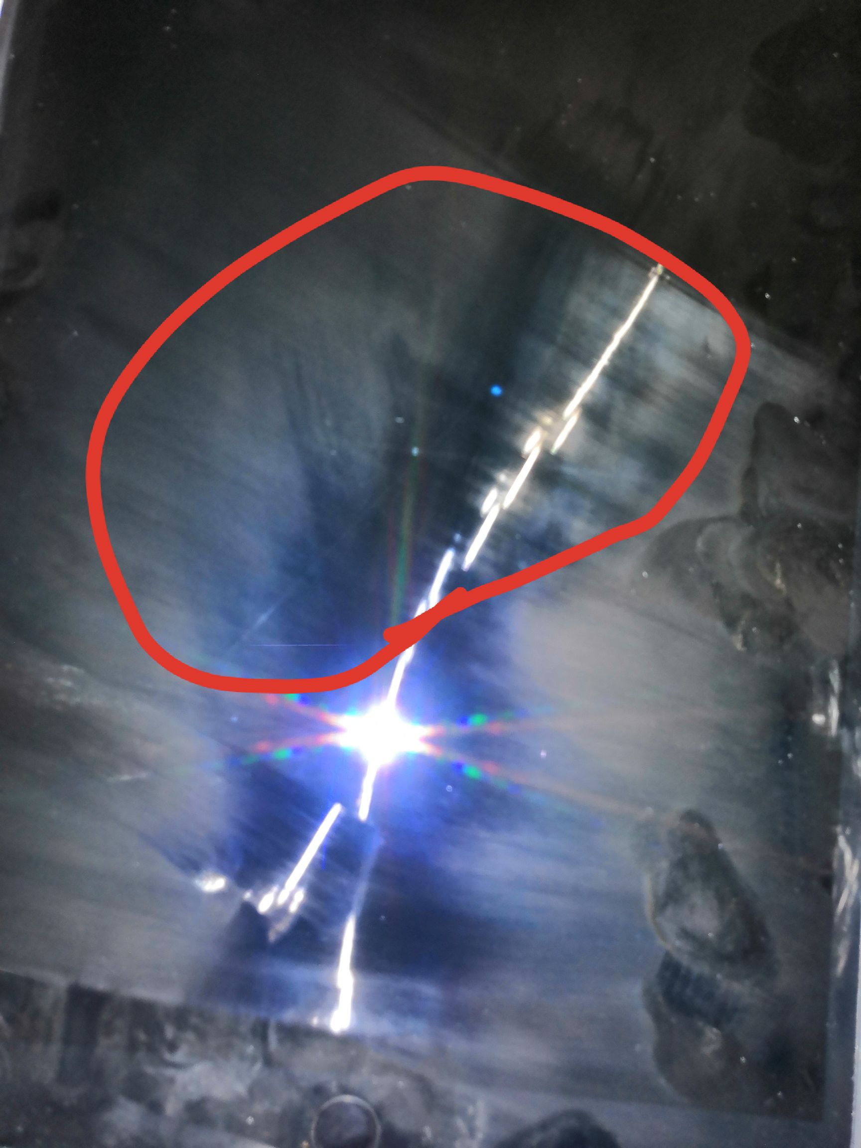 黑屏状态下个,屏幕出现两天黑线,很直,一条在屏幕中间一条在对角线,图中能看到一点