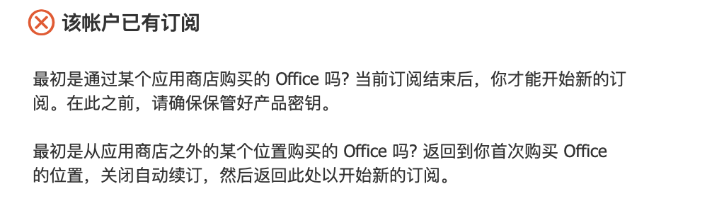 我在Mac的App Store里下载了office 365个人,打开应用登录微软账号后,就强制让选择订阅版本“个人版”或“家庭版”,当时随便点了个人版试用一个月,试用还没到期就取消了订阅,2月2日试用到期后,Apple ID也没有扣费续订。之后我从网上购买了Office 365家庭版激活码,到Office官方网站上激活时,提示我已经有订阅了。打了微软客服,微软客服后台查到我的微软账户在apple ID还存在订阅,只能先把Apple ID的订阅取消,不取消就无法激活。现在如何解决?