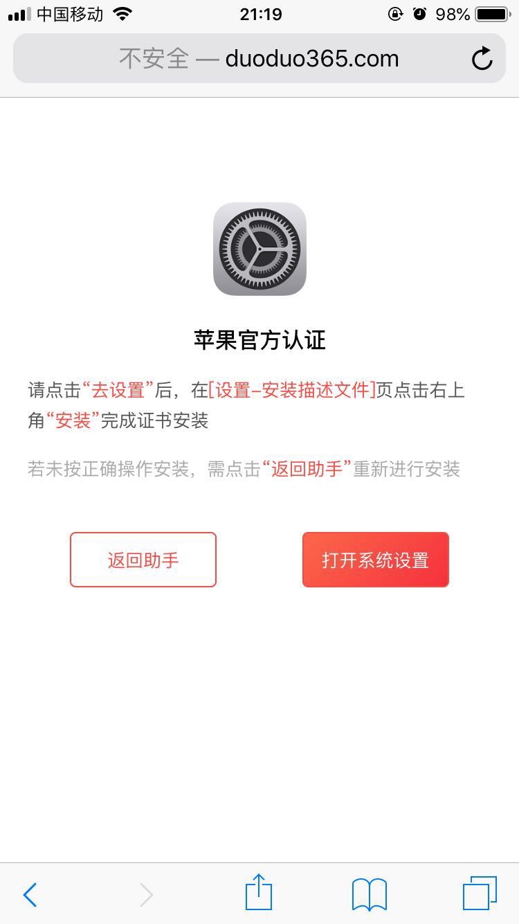 要为这个证书开启受 SSL 信任,请前往“设置”>“通用”>“关于本机”>“证书信任设置”。在“针对根证书启用完全信任”下,开启对这个证书的信任。