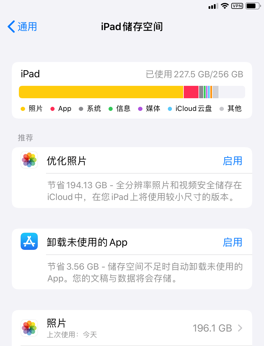 我的iphone和ipad登录的是同一个ID账号,图库都设置为原图保存在设备,但是两个设备图库所占用的容量却是不一样的(如下图),是怎么回事呢?