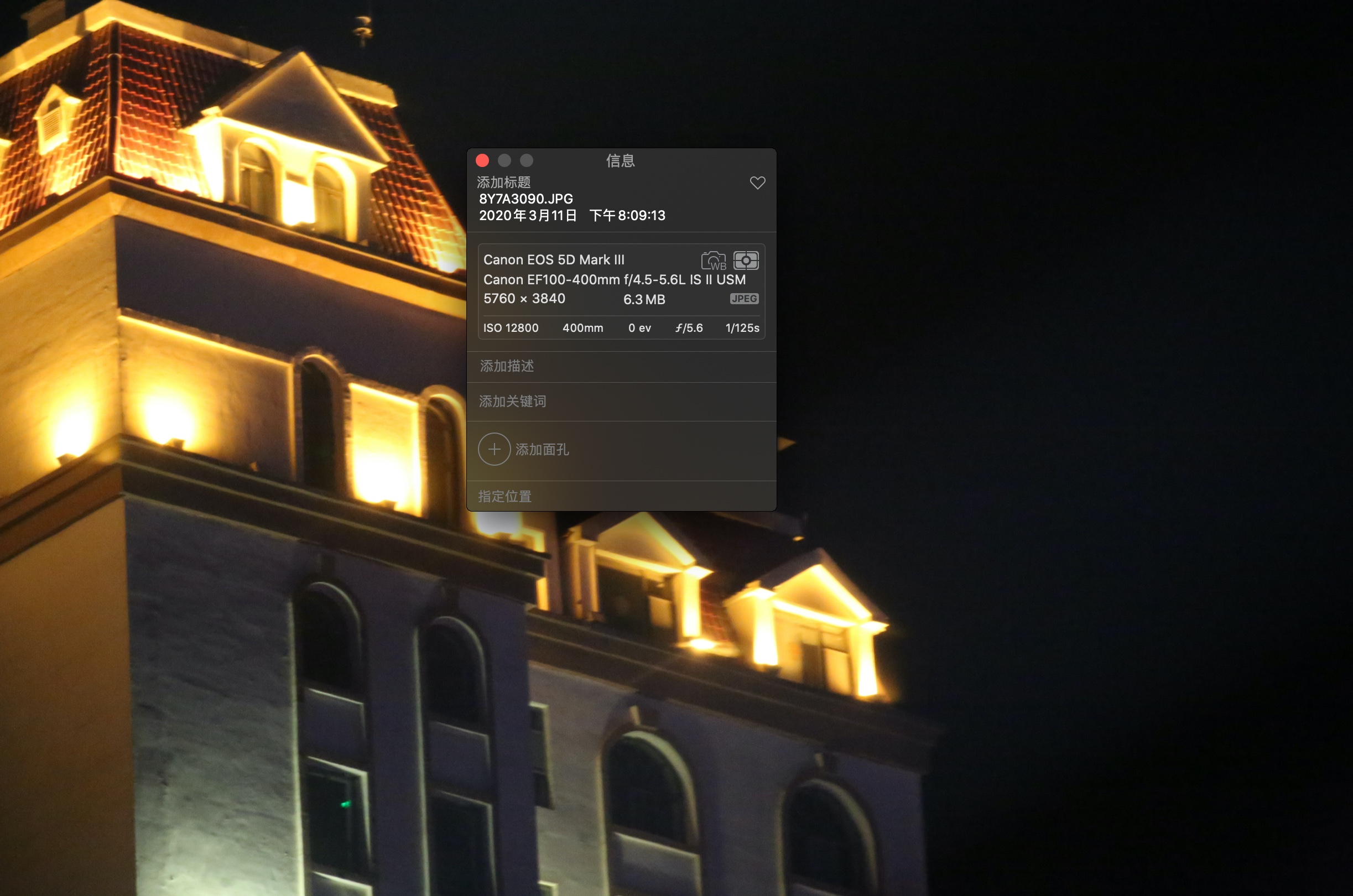 夜间如此低的光照下,建议您开启 Night Mode(夜间模式),一般来讲在 iPhone 11 上它会自动开启(注意左上角的月亮图标)。它可能不会增多画面细节,但会增加画面的亮度使照片元素更加可辨。