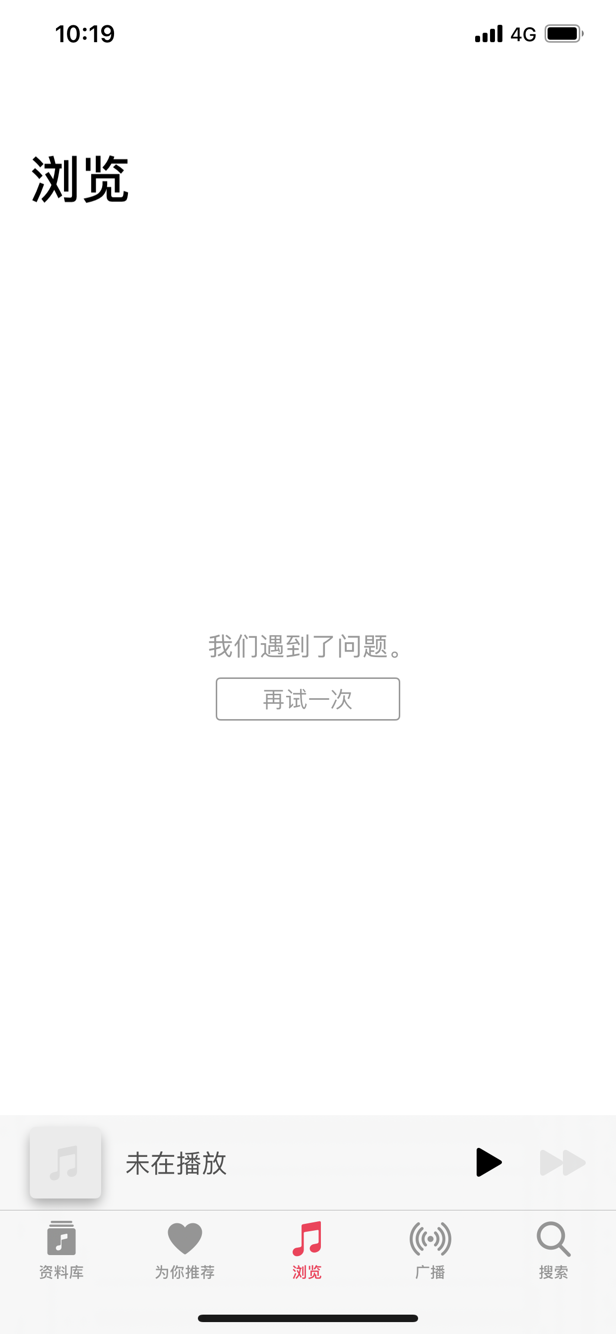 苹果音乐的“为您推荐”、“浏览”、“广播”、“搜索”功能不可用