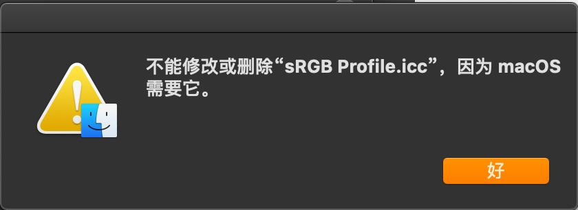 1、 在“系统偏好设置 - 显示器 - 颜色”这个页面里,点不同的颜色描述文件,显示屏没有变化。 之前就是在这里切换不同的颜色描述文件来使用的,切换时显示屏会有变化。但是现在切换不成了,选择任何一个颜色描述文件后显示器无任何变化,不管点哪个,回到这个页面时还是之前选中的颜色描述文件。 始终处于sRGB IEC61966-2.1,无法更改成其他任何一项,也删除不了。