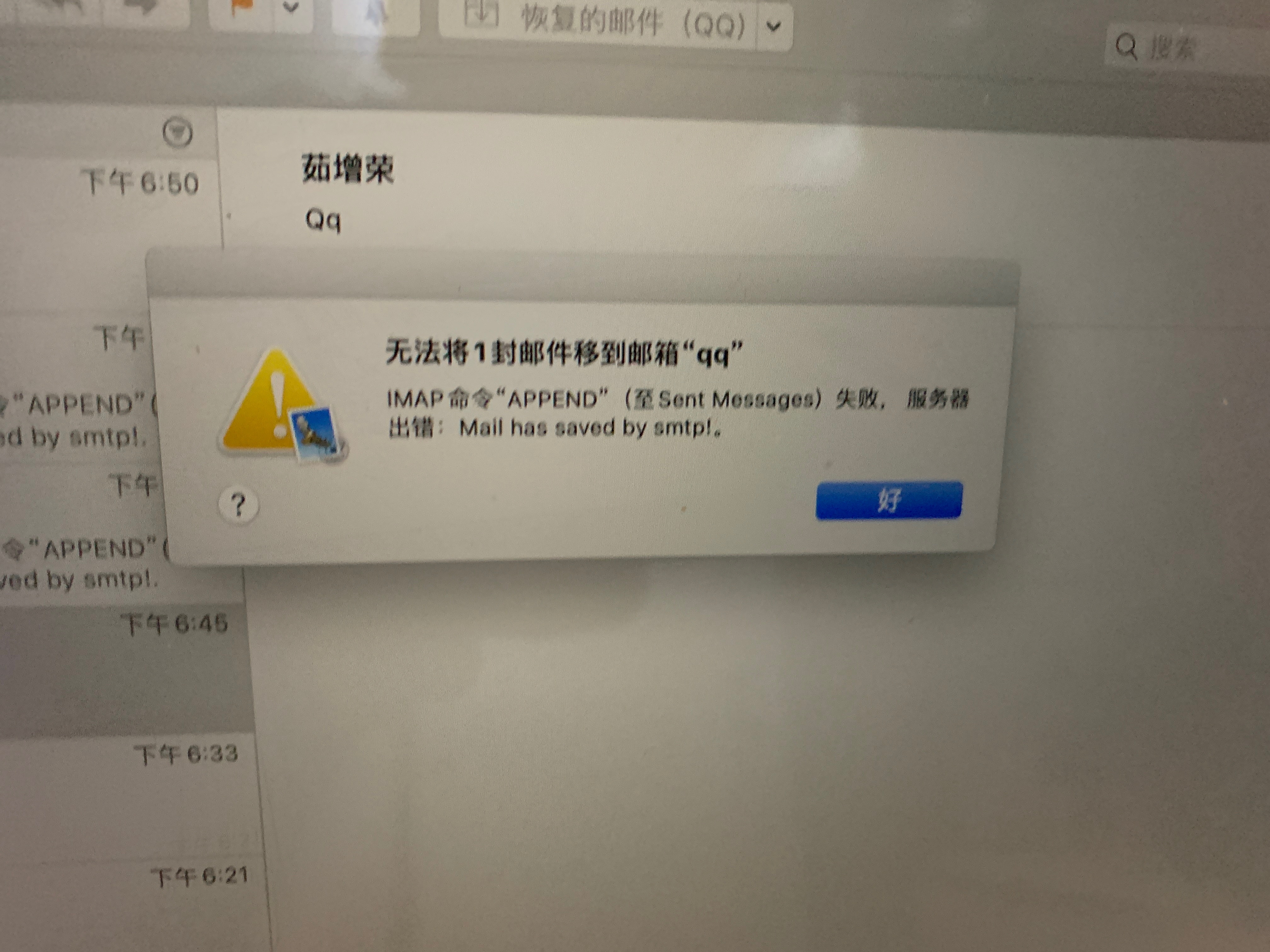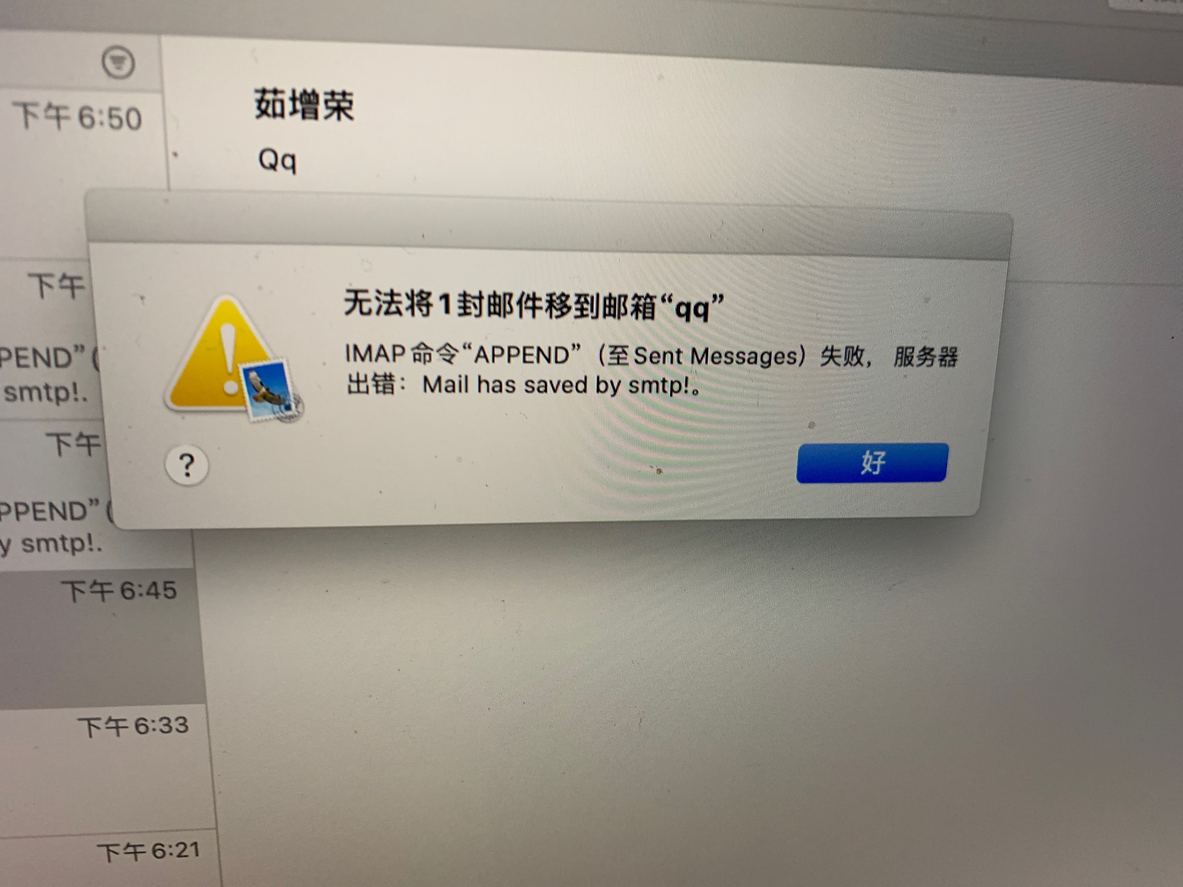 . mac 邮件添加qq邮箱,发送回复时 提示IMAP命令“APPEND”(至 Sent Messages)失败,服务器出错: Mail has saved by smtp!.