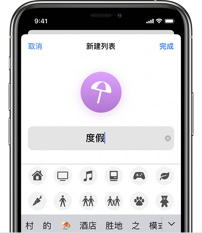 “新提醒事项”,然后输入您的提醒事项。 - 轻点“完成”。