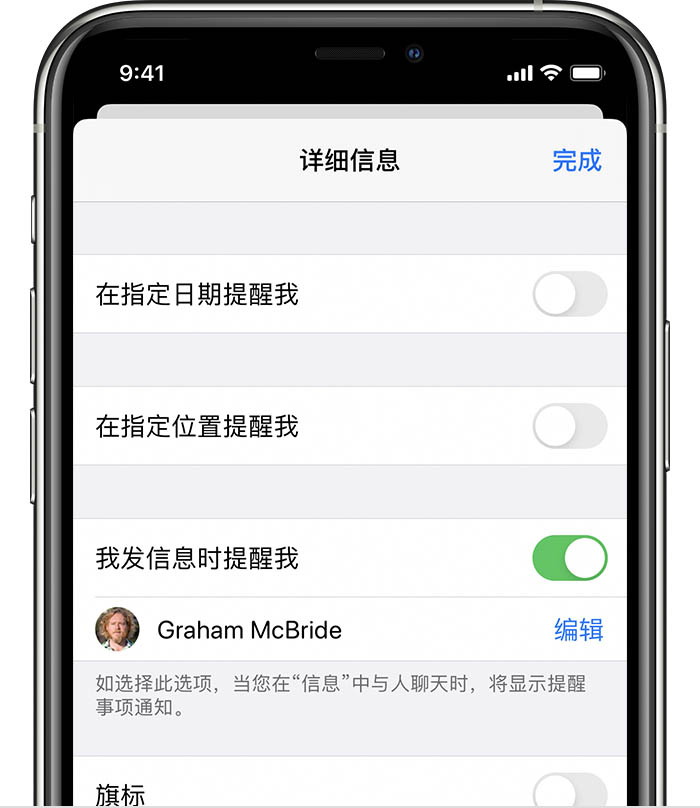 编辑您的提醒事项,在发信息时接收通知,以及添加更多信息