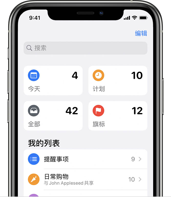 - 设置 iCloud 以使您的提醒事项在所有设备上都保持更新。打开“设置”App,然后轻点“[您的姓名]”>“iCloud”,然后打开“提醒事项”。在“提醒事项”App 中,您将看到登录到同一 Apple ID 的所有 Apple 设备上看到所有提醒事项。