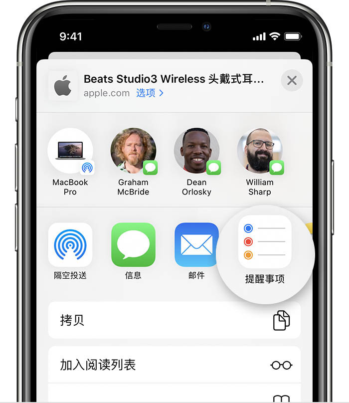 为提醒事项添加附件。您可以拍摄新照片,从照片图库中选择图像或扫描文稿。