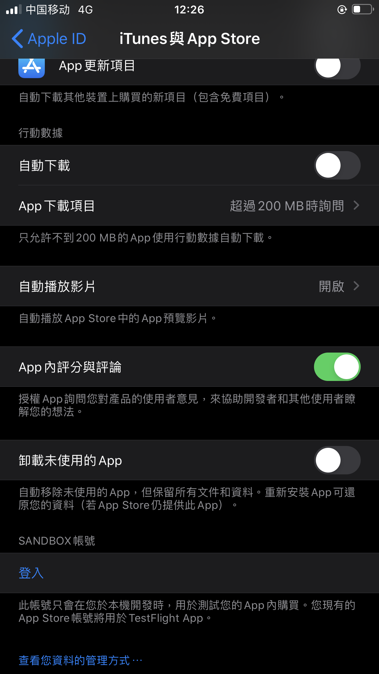 我的设备是iPhone8plus,我家人他们的都没有沙盒账号(SANDBOX账号),我也不知道我为什么会多了这一个账号。