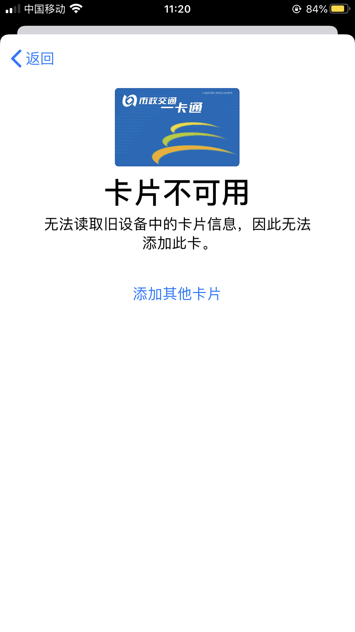 我没有充分了解,就将已经转移到Apple Watch中的公交卡移除,我以为从Apple Watch中移除后就会回到iPhone。但现在我手机中的公交卡没了还出现图中问题 求助