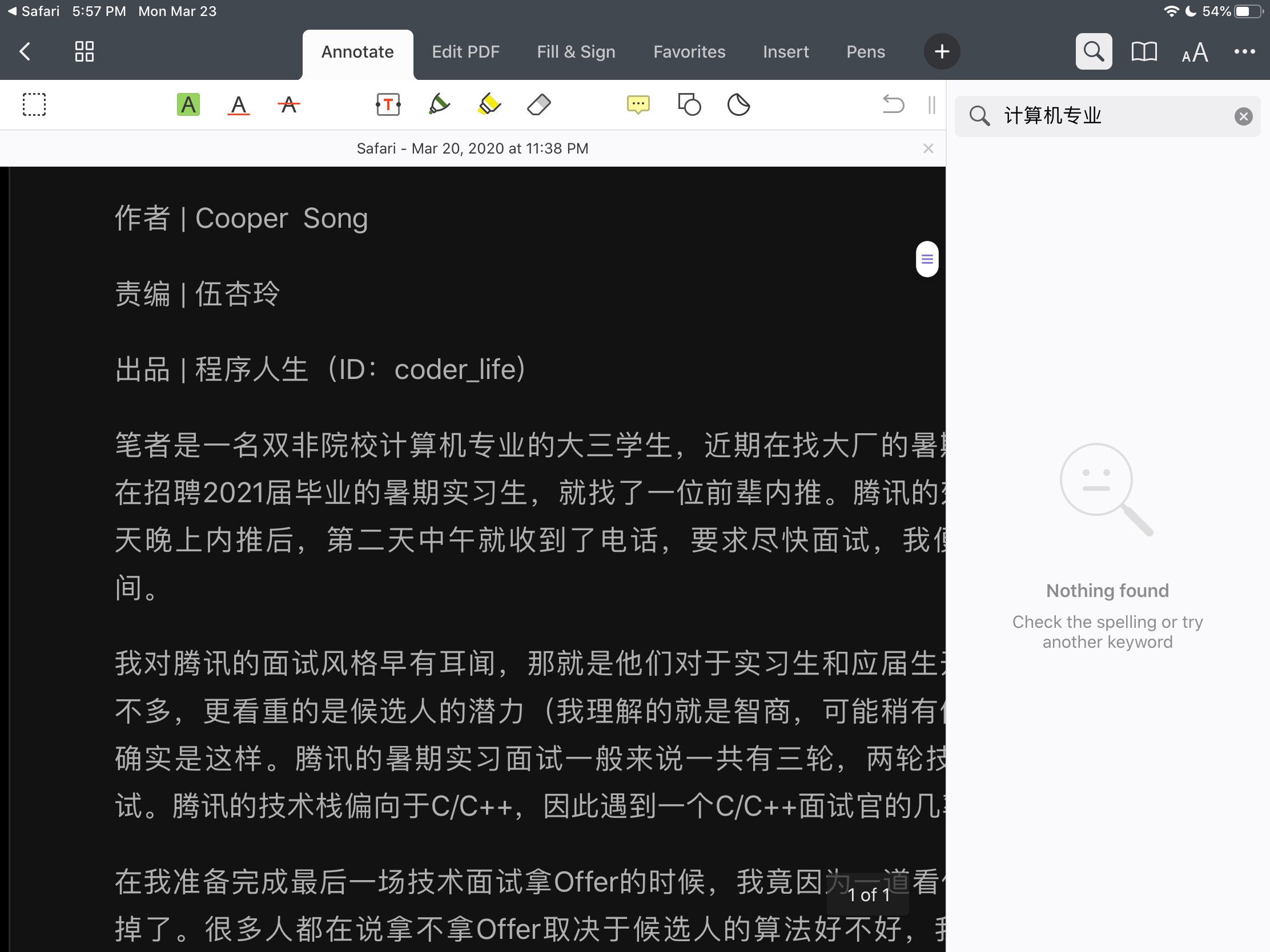 包括ios系统和ipadOS系统,mac我没有所以不知道。亲测其他语言(如英语,日语,韩文),以及部分繁体中文 的网页通过 safari 的 “标记(Markup)”或者 “打印(Print)”生成的pdf文件,都可以正常 复制/检索 文档内文字。而只有简体中文的网页通过同样方法创建pdf文件后,文档内文字不可检索,也不可复制。请问是什么原因造成的,有什么解决办法吗?