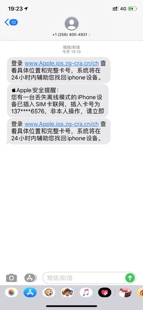 我的iPhone丢失几天之后,收到了一条来自美国亚拉巴马 阿尔贝维尔的短信,提示我根据短信内容操作,我是不是被钓鱼网站给骗去了苹果ID和密码。