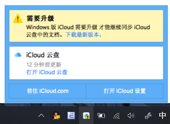 win10总提示windows版iCloud需升级才能同步iCloud云盘中的文档。