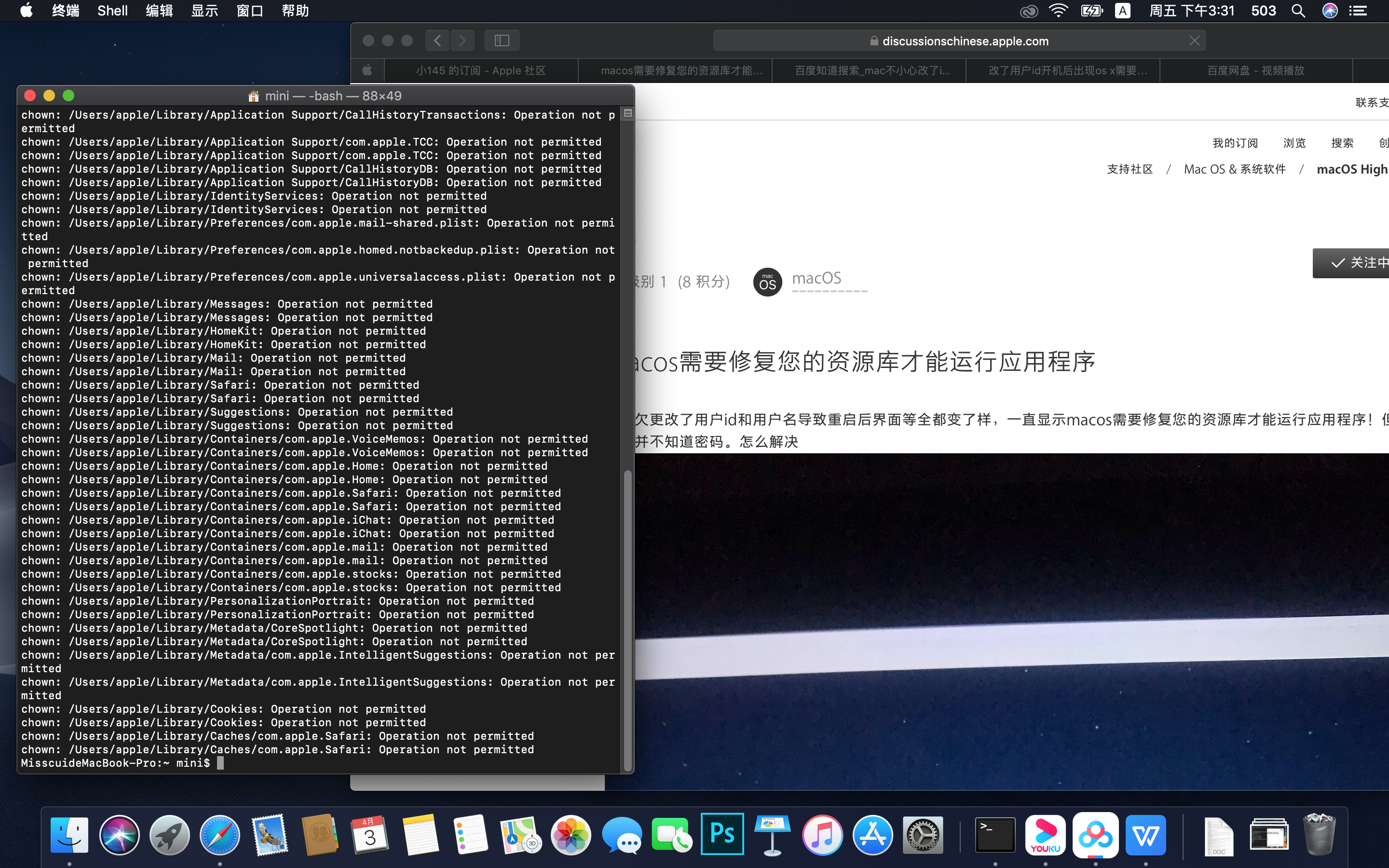 我在apple上填了用户名mini和密码。登录成功了!但是safari是每次打开都要输入“macos需要修复您的资源库才能运行应用程序”的用户名和密码,然后会出现意外退出的框。按重新打开会一直重复的需要录入用户名密码然后再出现意外退出框,循环往复。