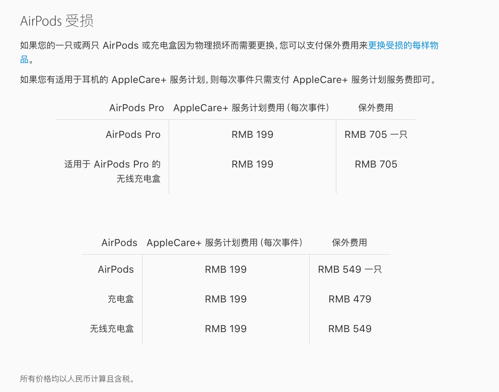 如果任一只 AirPod 在打湿后损坏,您可以与我们聊天或通话以订购更换件。
