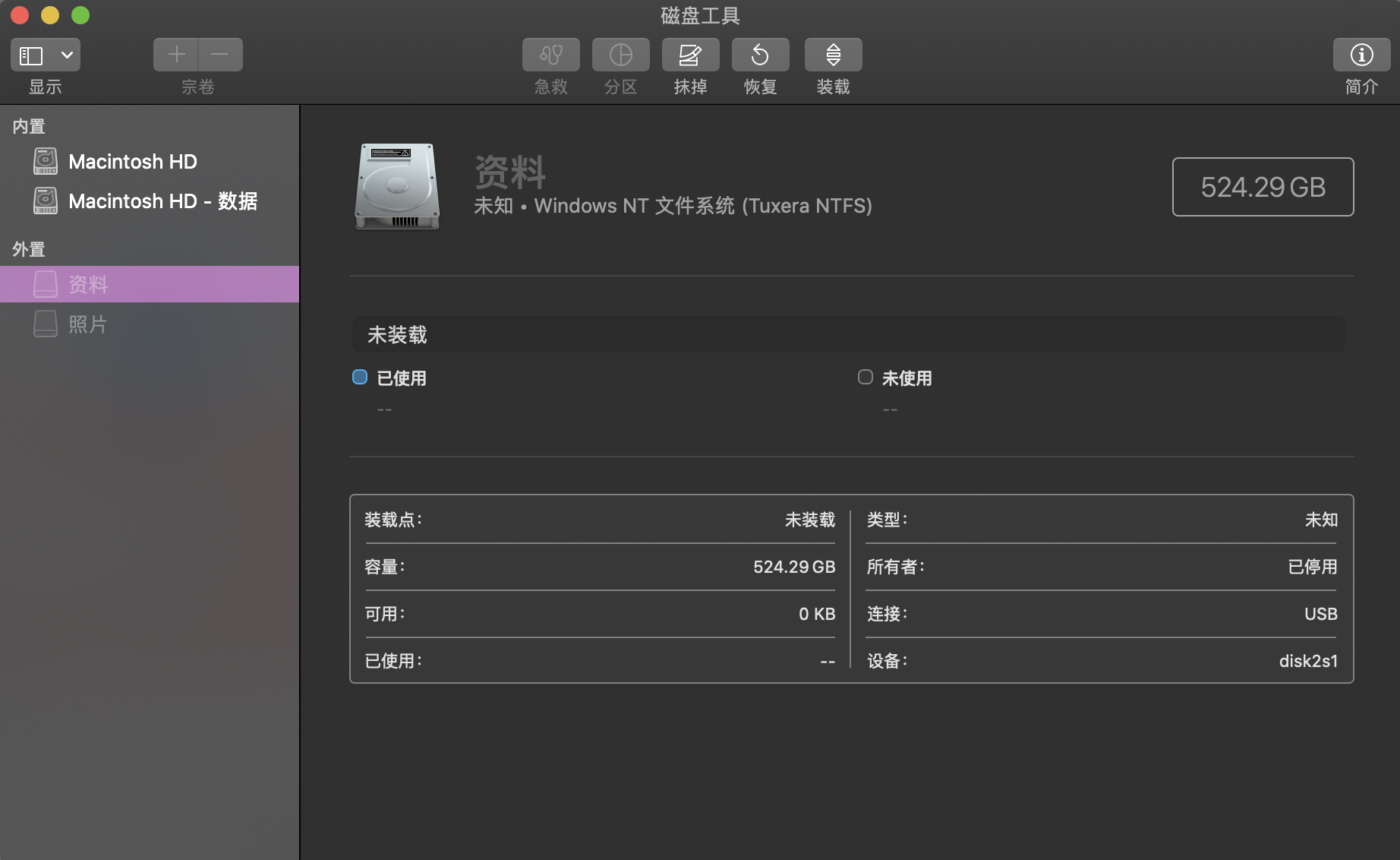 如果您仍需要以NTFS等格式使用您的移动硬盘,请尝试使用 Tuxera NTFS、Mounty Mac、Paragon NTFS 等应用程式。这些应用可能收费,或者需要对应设置以及配置才能正常使用。请检查您的应用程式是否配置正确。Apple、Apple 社区以及我不承担因为使用您这些程式的任何责任。