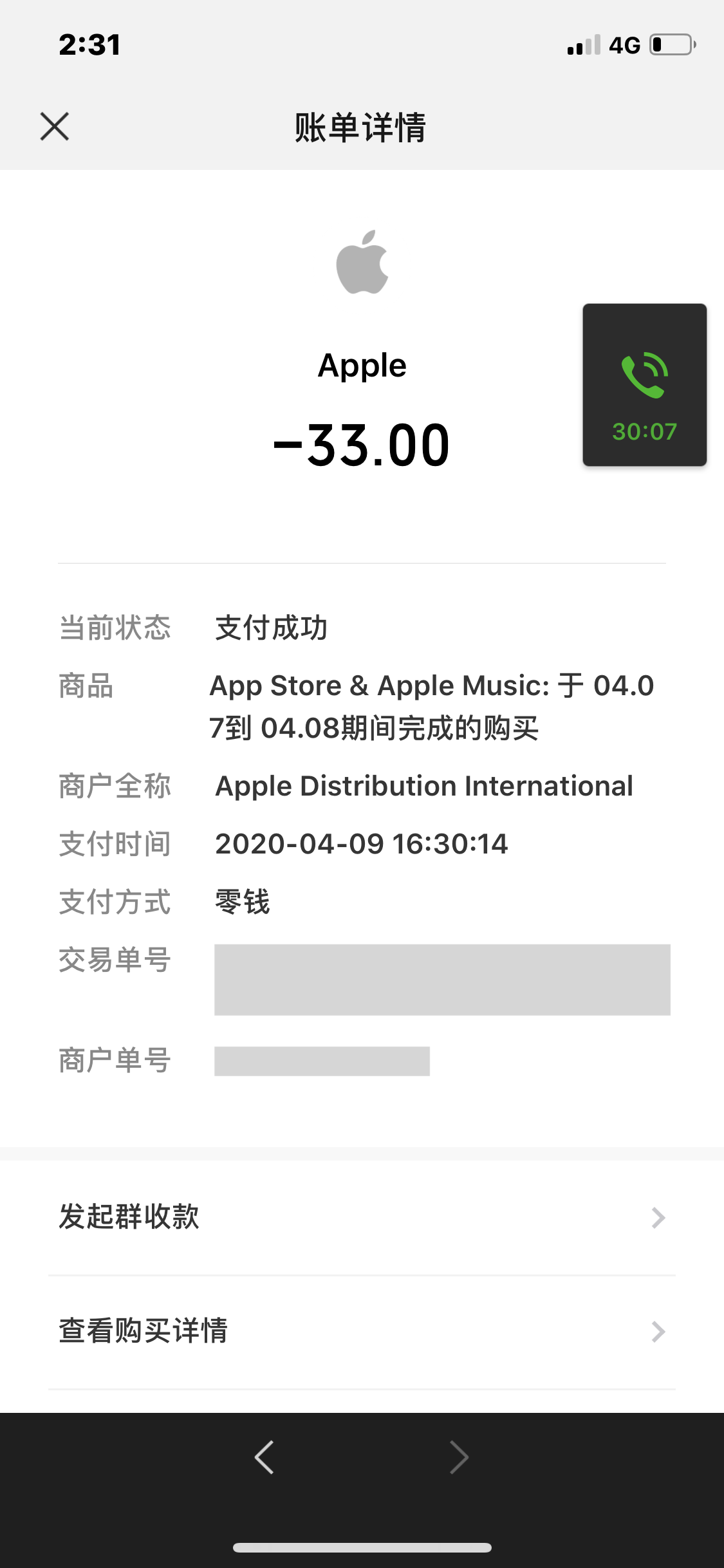 5.如果你的这个的APP没有退款选项,那么后边一定是显示的蓝色框,写着“iTunesstore支持”