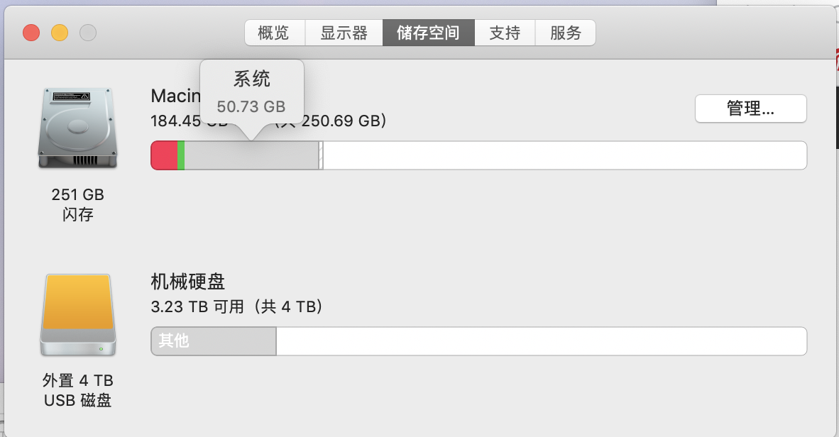 我了解到您对于 Mac 储存空间中的“系统”类别有疑问。目前,“系统”类别中包含 macOS 系统应用程序和文件,例如:“邮件”、“终端”、“计算器”和“时间机器本地快照”等。