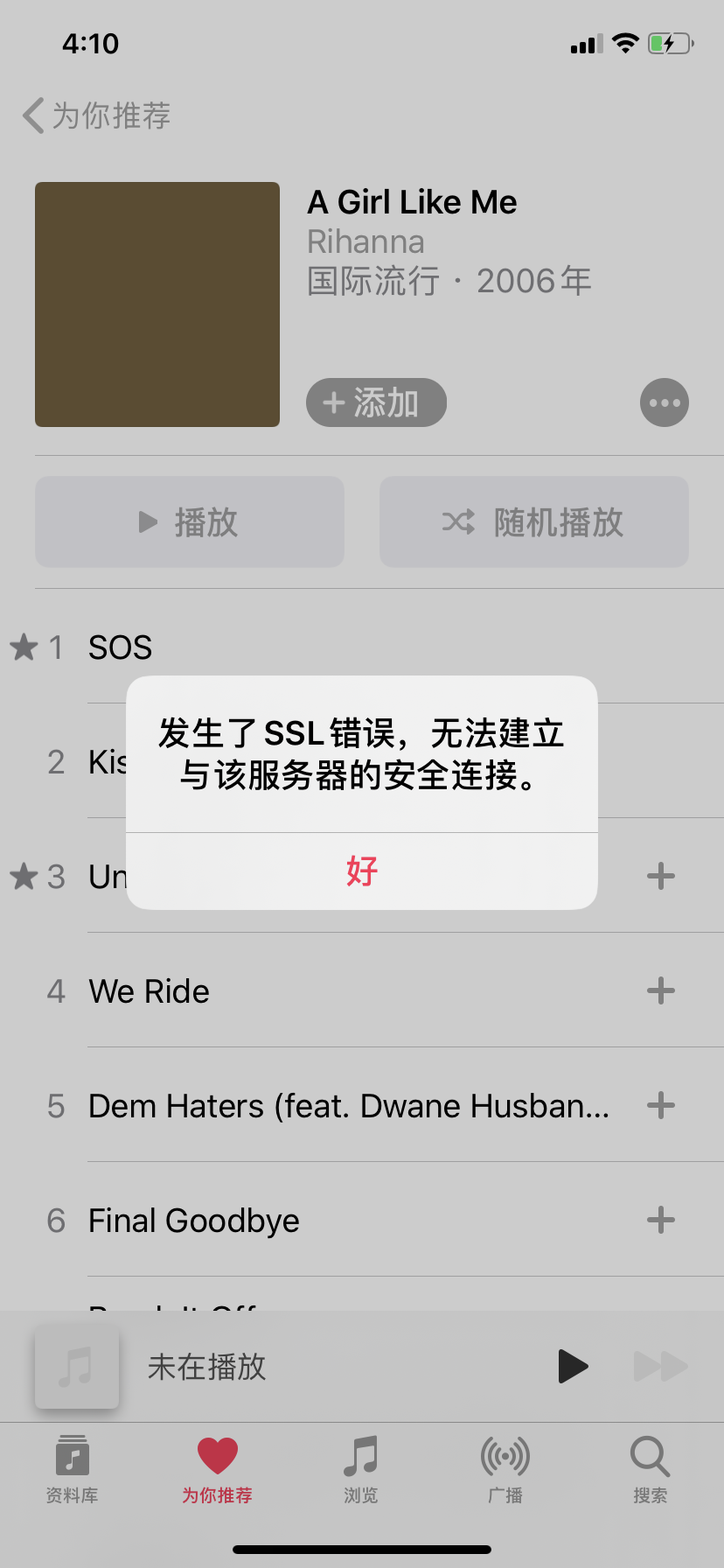 Apple Music 提示ssl错误怎么解决啊