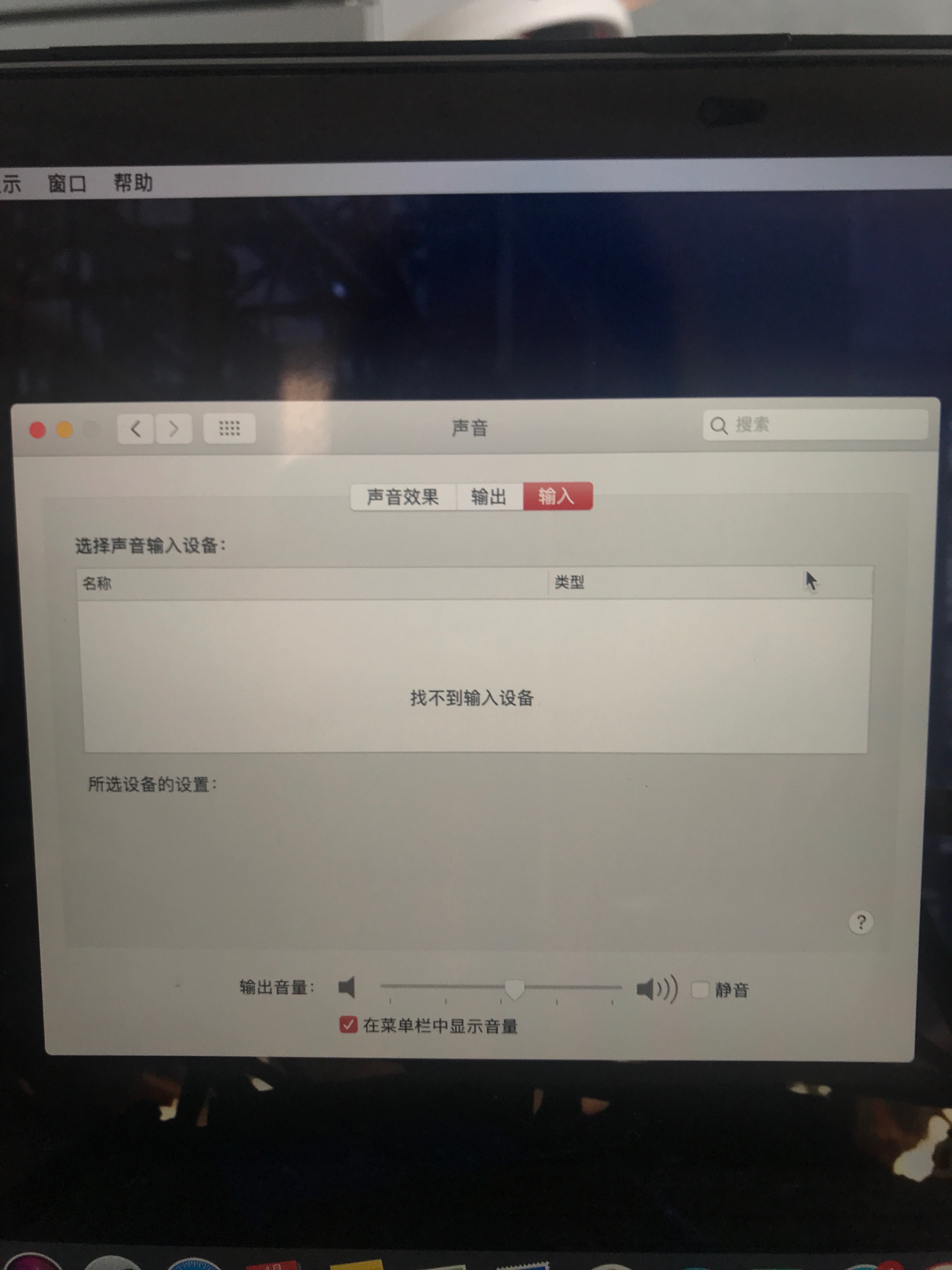 没有检测到输入设备,点左上角 Apple logo -“关于本机”-“系统报告”在左侧选择“音频”截图看看。