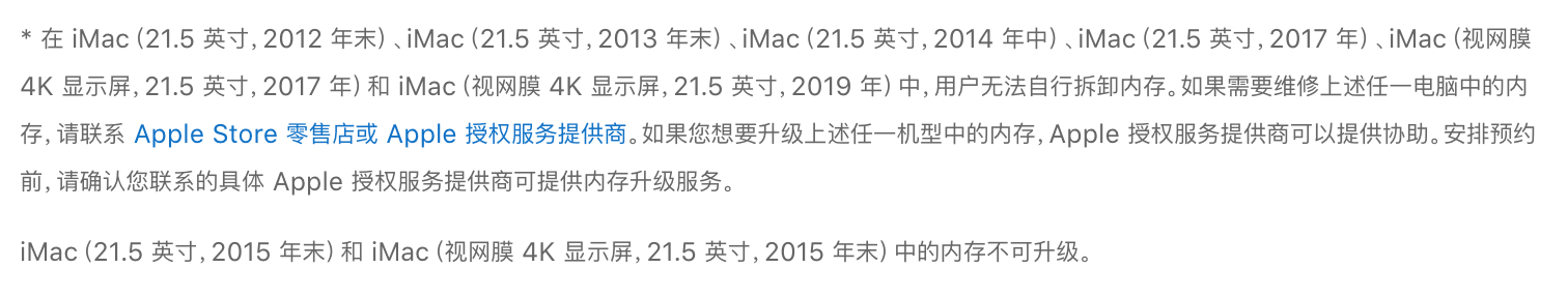可以升级的,不过 21.5 寸 iMac 无法自行升级需要专业的工具拆卸安装,需要前往就近的 Apple Store 或授权服务商,参考:安装 iMac 中的内存 - Apple 支持