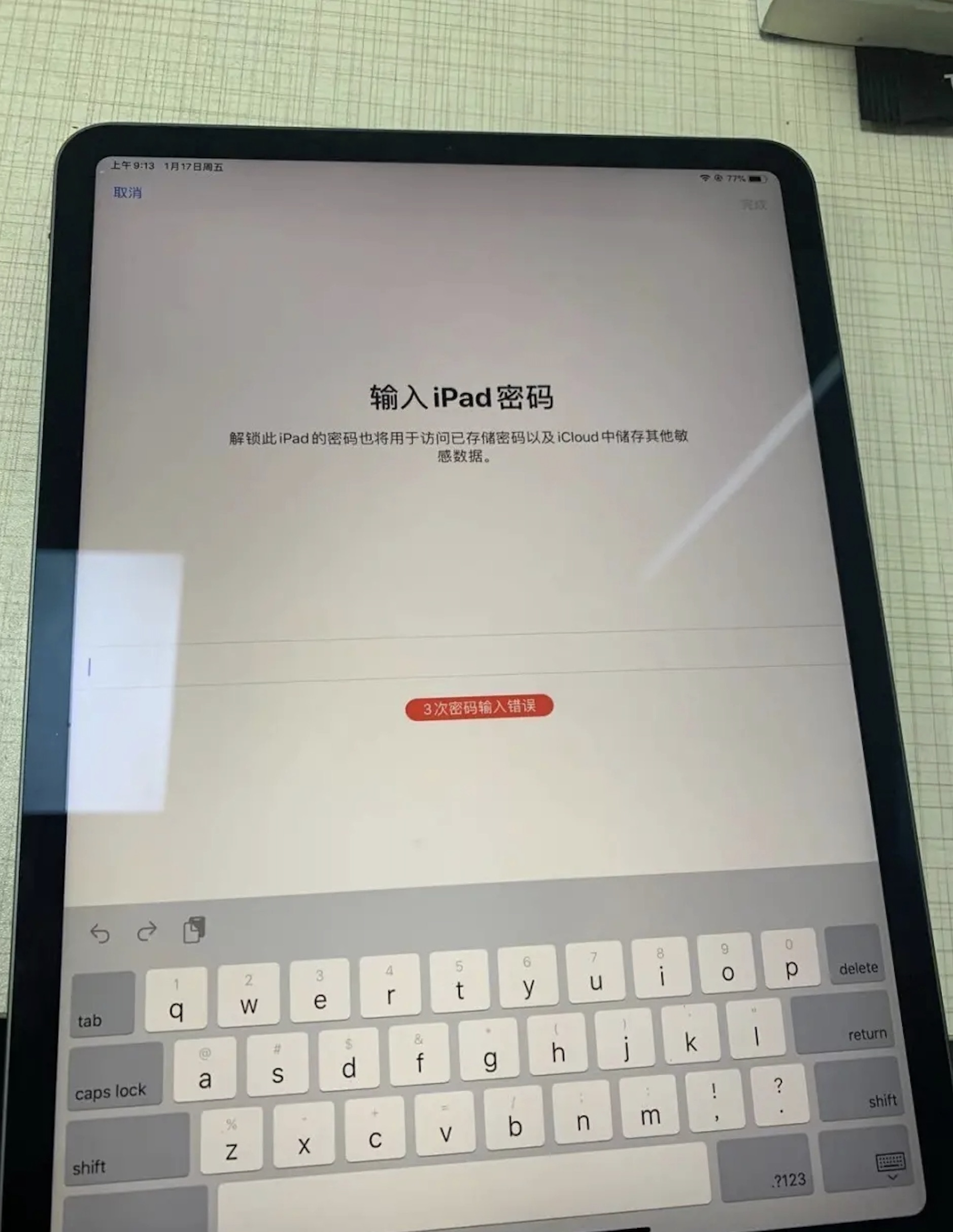就是我官网买的ipad 刚开机设置 为什么会出现 解锁ipad密码 解锁此ipad的密码也将用于用于访问已存储密码以及icloud 中存储 我不知道密码啊