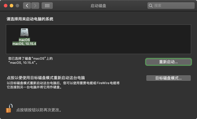 选择启动磁盘,选中您安装的系统