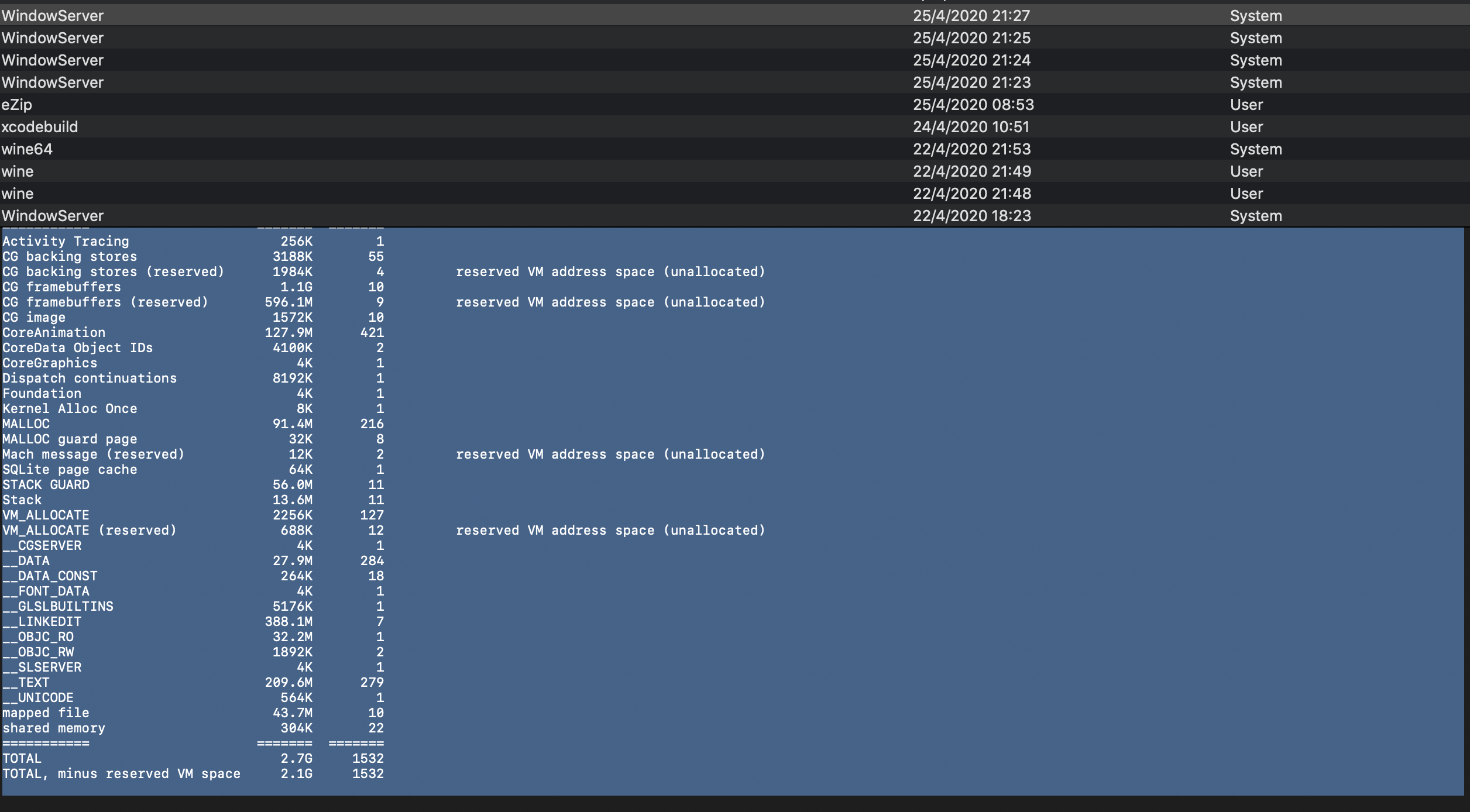 这些WindowServer的错误日志里面,都有