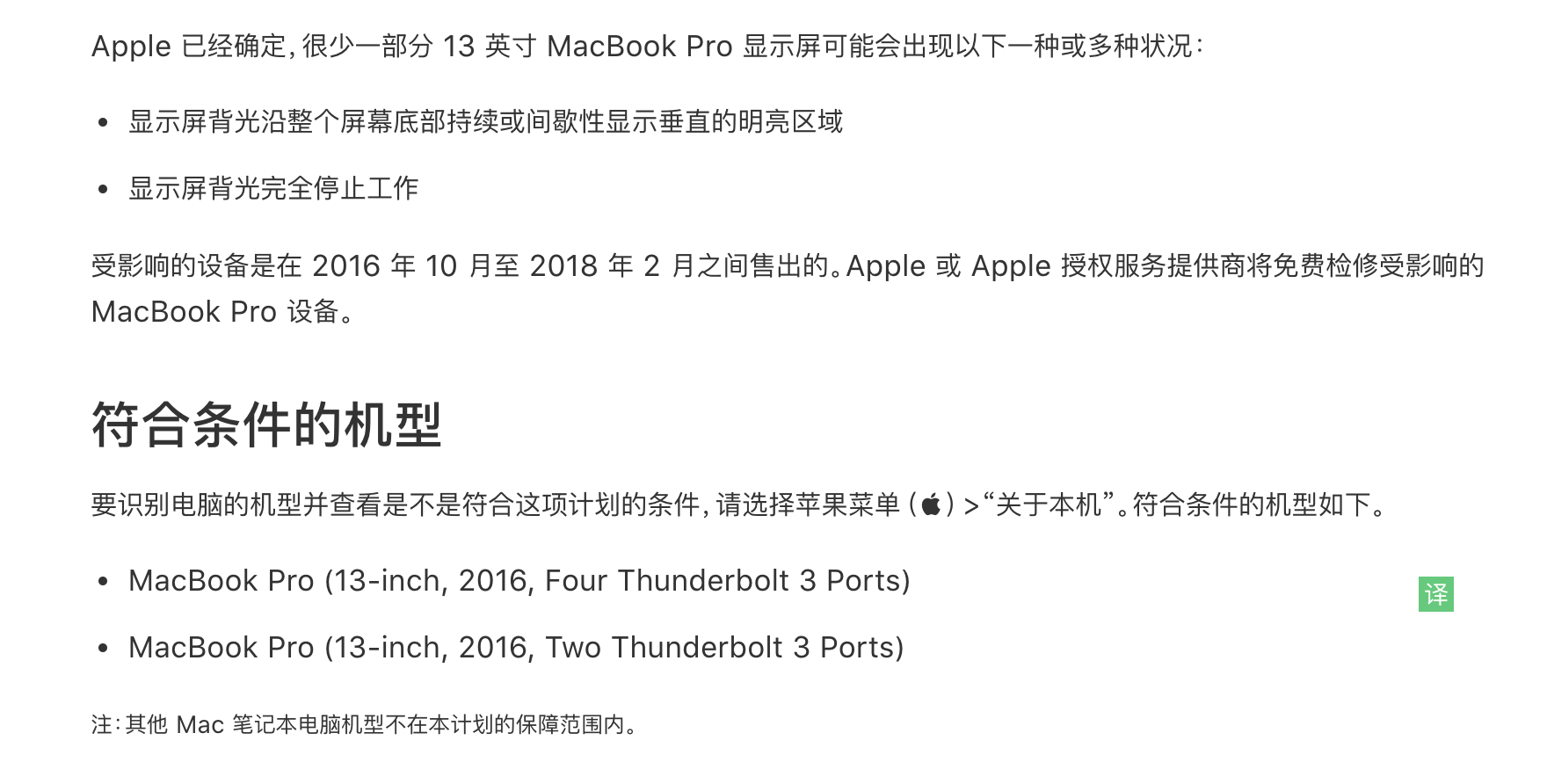 我看了官网https://support.apple.com/zh-cn/13-inch-macbook-pro-display-backlight-service 有给出16年的显示屏背光服务计划,为什么17年的来会出现这样的情况,而且没有在服务计划内。