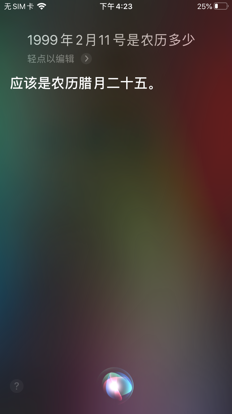 复现错误:问Siri “1999年2月11号是农历多少?”得到的答案是腊月二十五