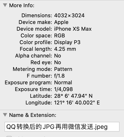 但是我用iPhone 6s Plus微信发送原图会保留Exif信息,iPhoneX发送就没有,几部iPhoneX都这样。微信版本都是7.0.10或新一点的版本。