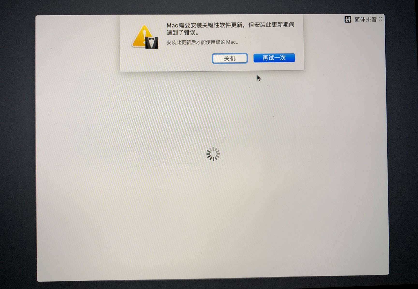 “MAC 需要安装关键性软件更新,但安装此更新期间遇到了错误。安装此更新后才能使用您的 MAC。”