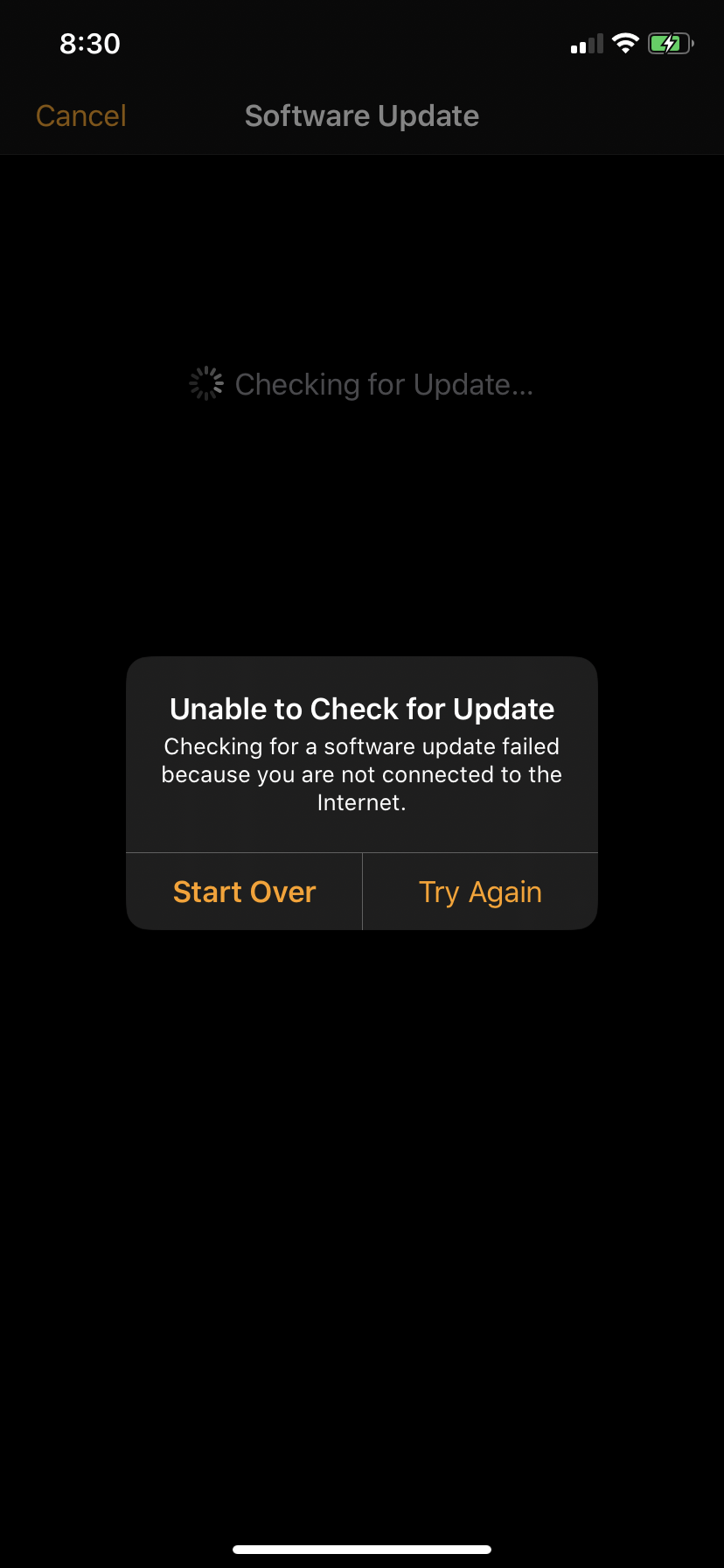 首次连接手表时要求更新 中间断开然后重试就出现未连接互联网的提示了 已经试过更新iPhone系统和重置Apple Watch系统 重新下载Watch app