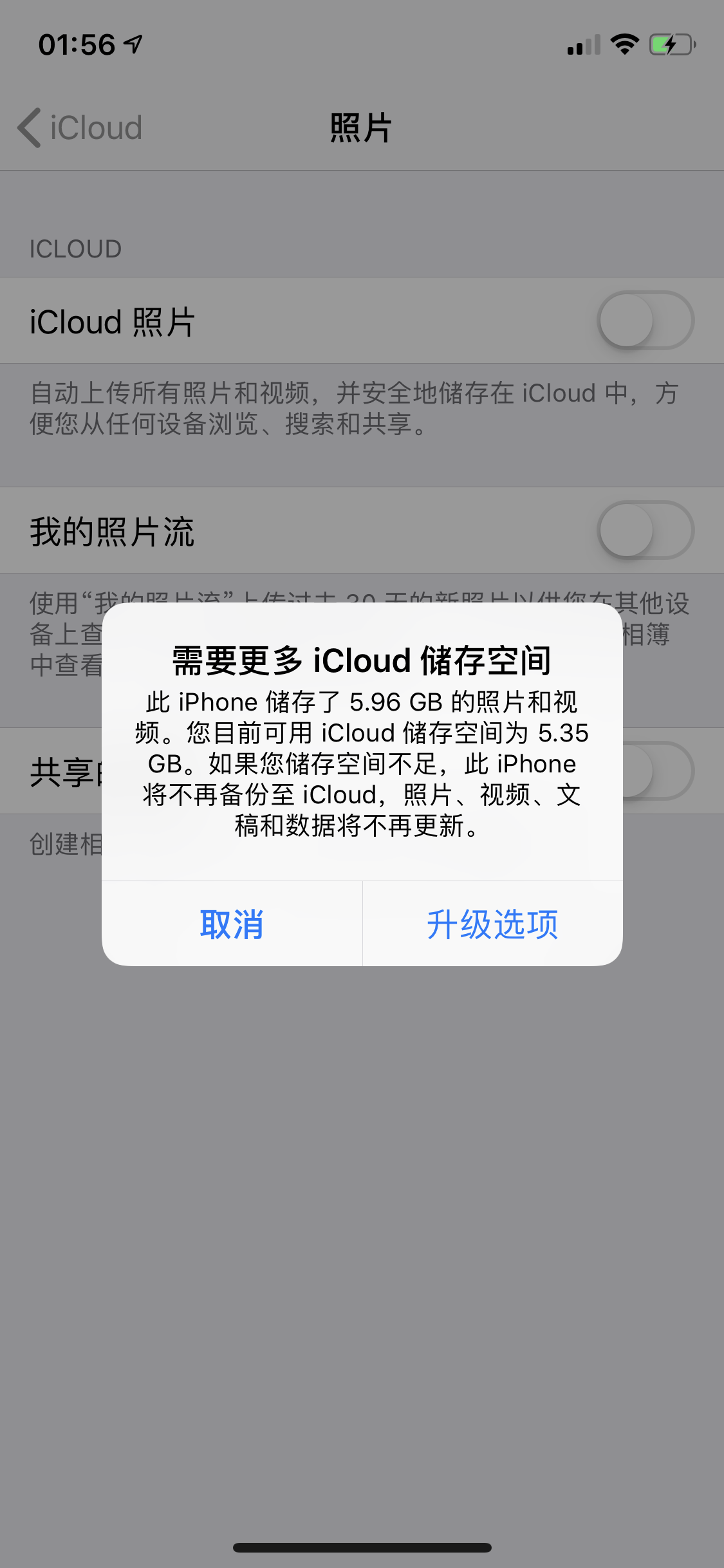 为什么打开iCloud时总显示需要更多内存?明明还有5G内存。