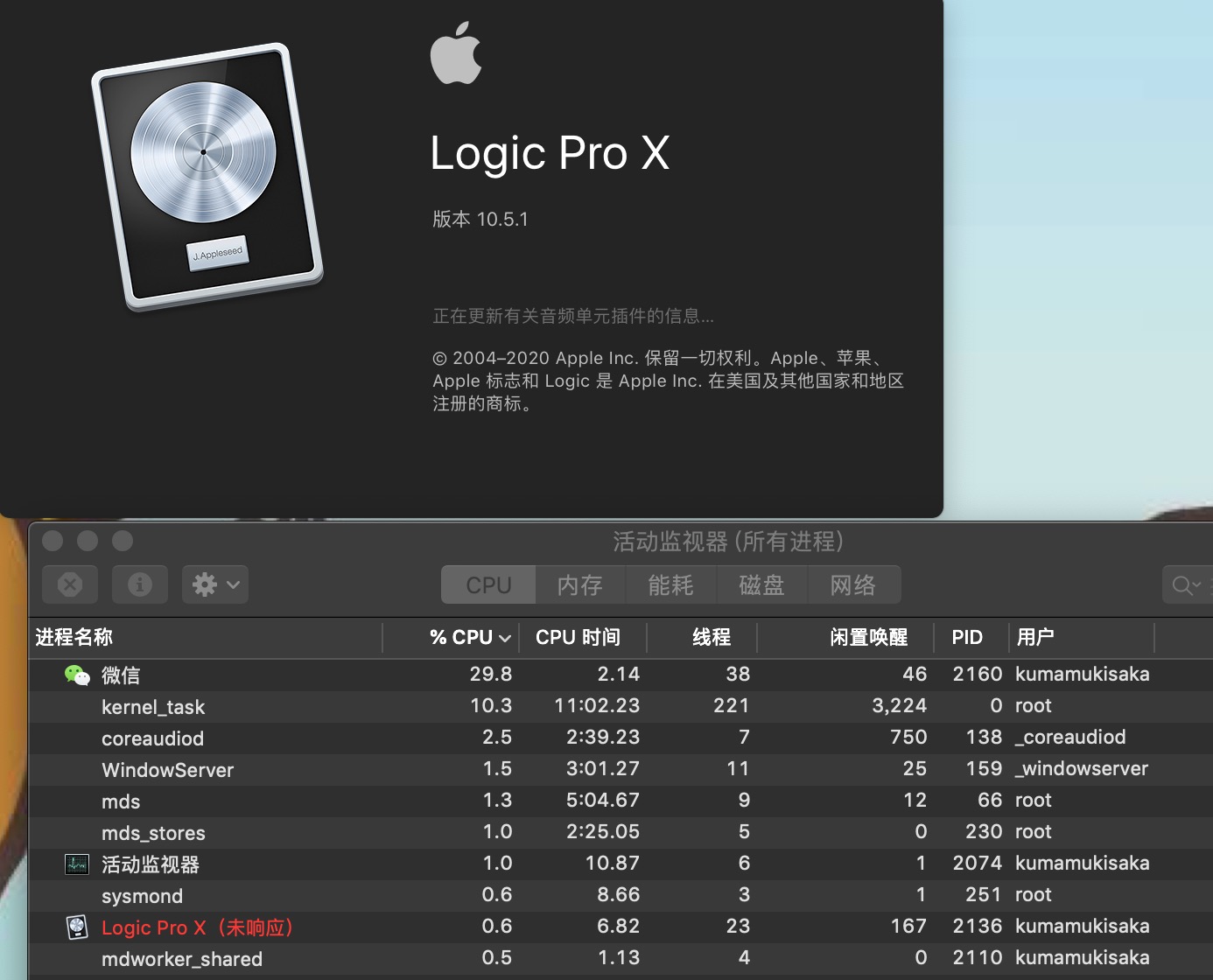 logic pro x 10.5.1打开无响应
