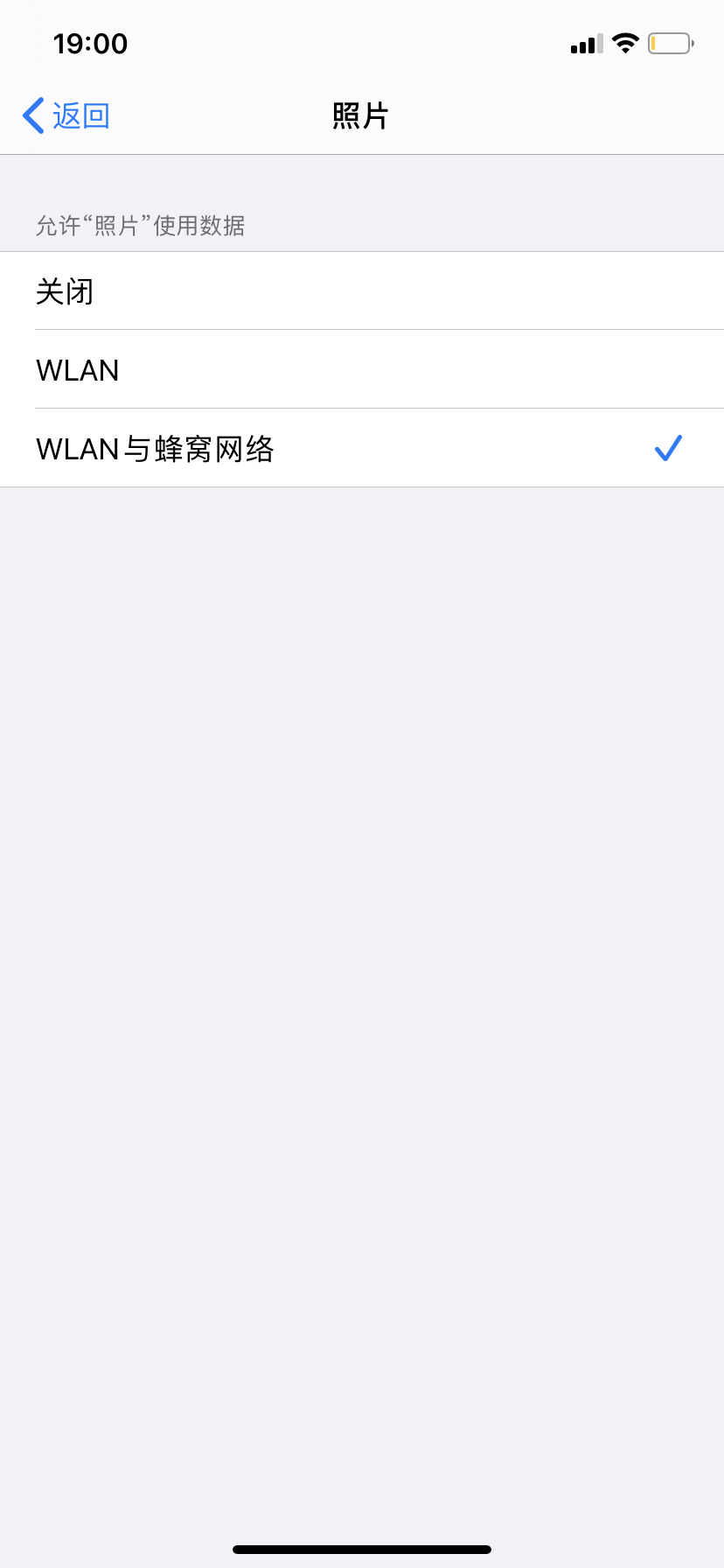 先检查下“设置”-“无线局域网”-“是用无线局域网和蜂窝移动网络的 App ”中“照片”处于“ WLAN 与蜂窝网络”选项。