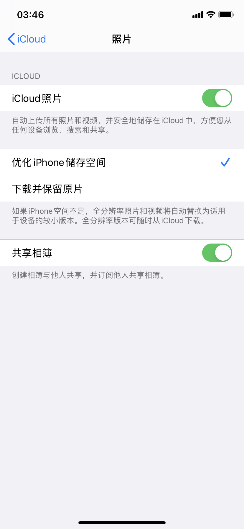 在iCloud空间足够、iPhone本身储存空间不够、已打开iCloud照片优化iPhone存储空间设置、电量充足并且连接无线网络的情况下,照片仍不自动上传iCloud。