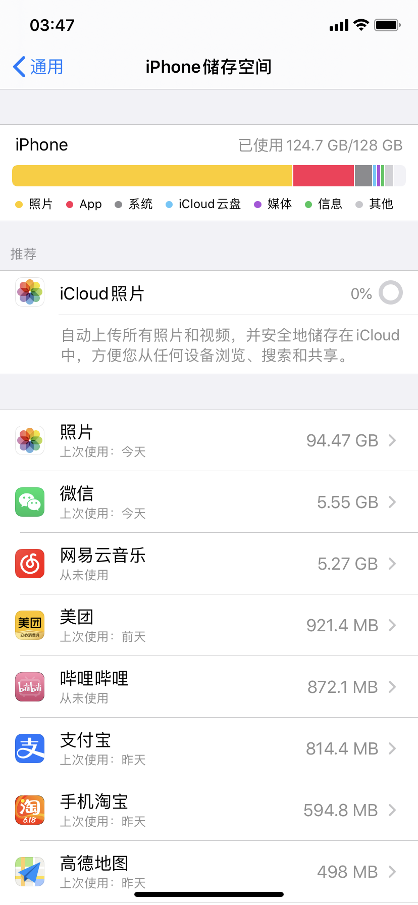 在“设置”-“通用”-“ iPhone 储存空间”中看看照片目前占用的本地空间是多少?另外试试注销掉 iCloud 重新登陆呢?