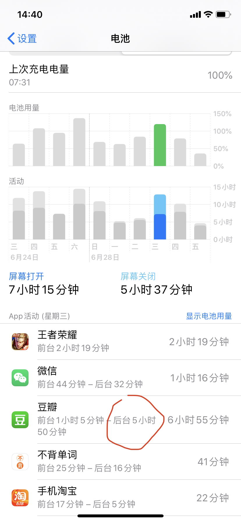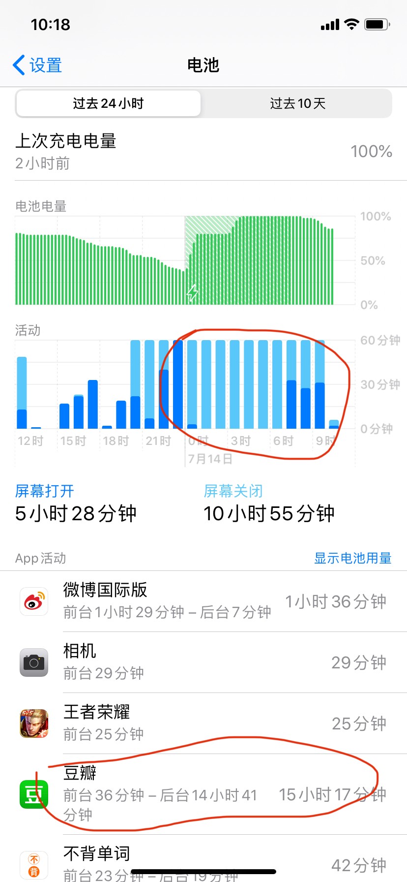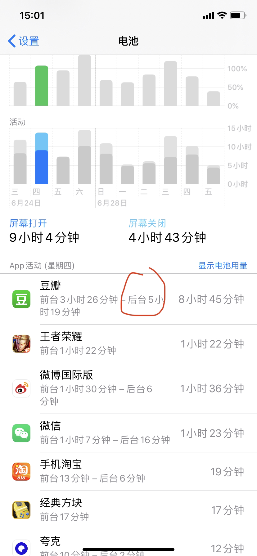 关闭了后台刷新的情况下,豆瓣app在后台耗电