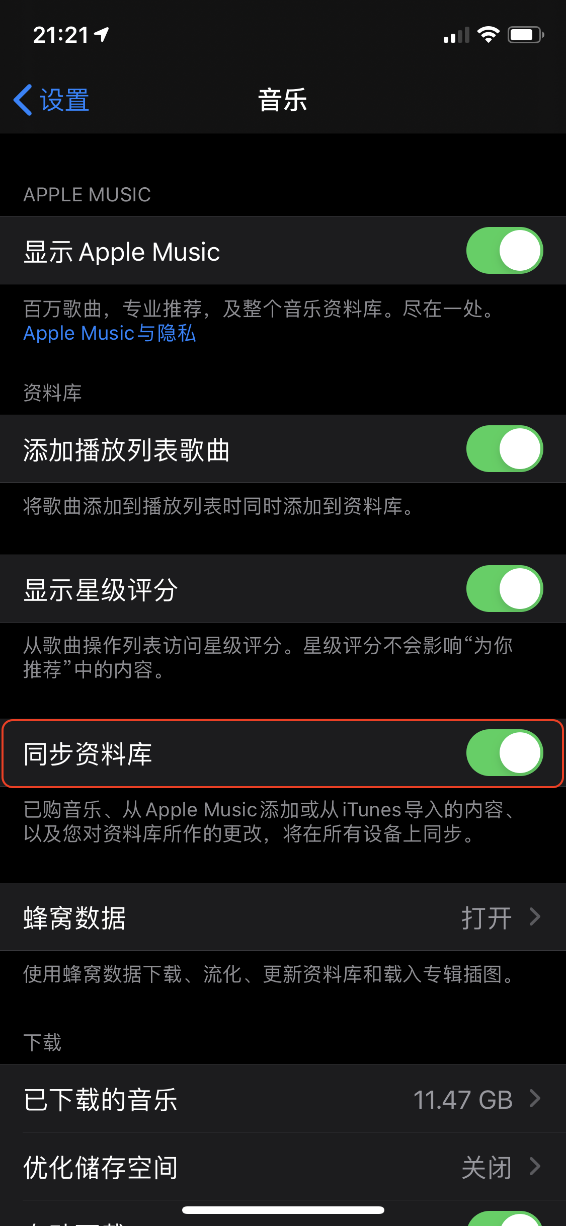 先分别检查下 iTunes 和 iPhone 中 Apple Music 的设置,确保打开了 iCloud 资料库。