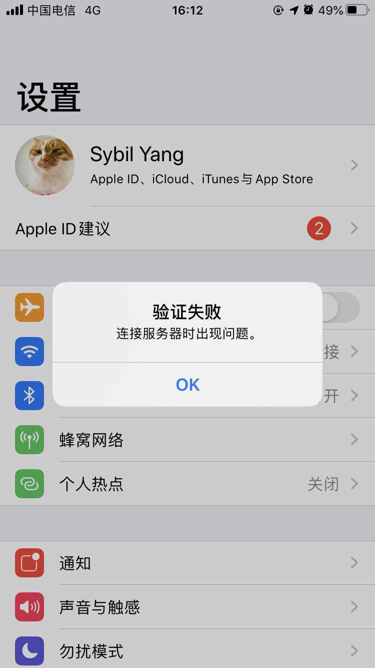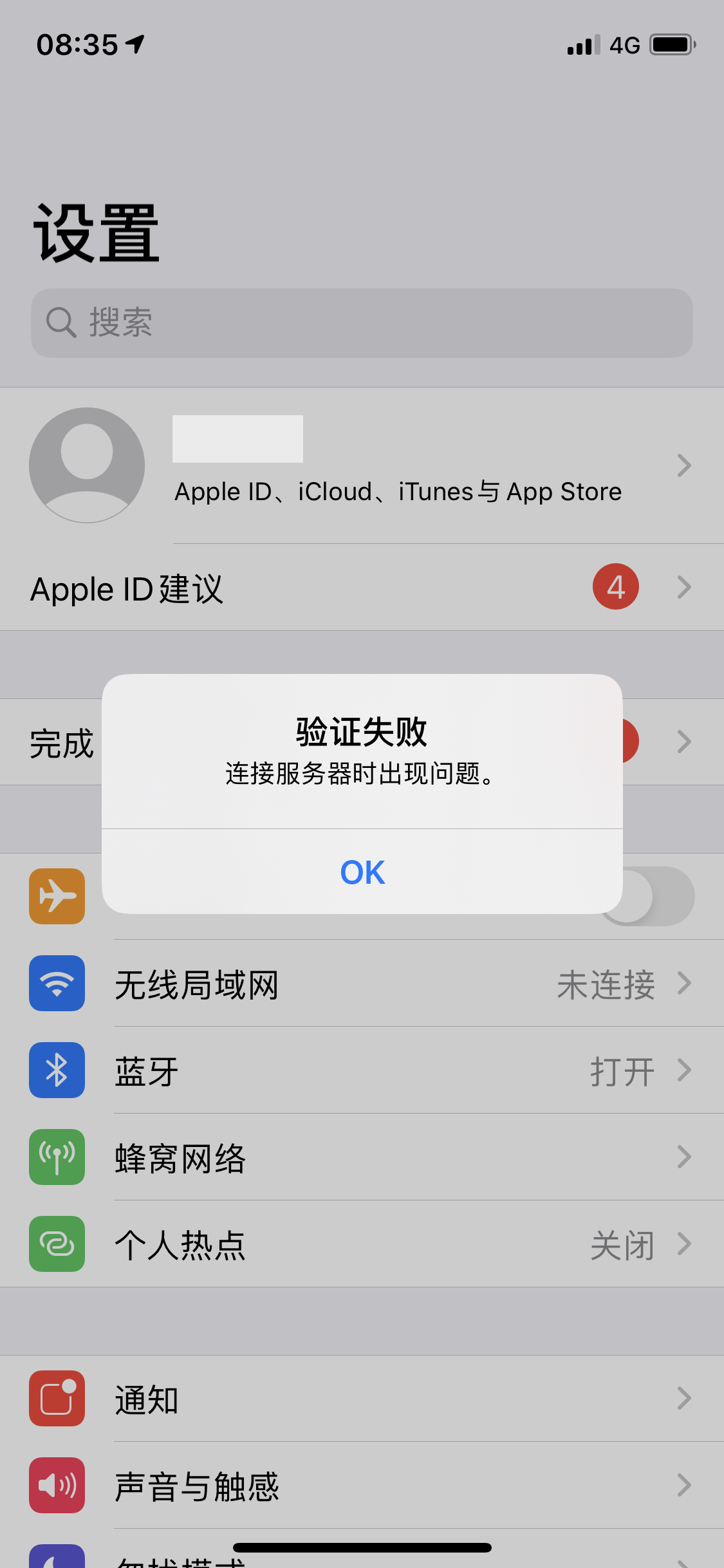 apple ID建议 连接服务器失败 是什么原因?还原网络设置也不行