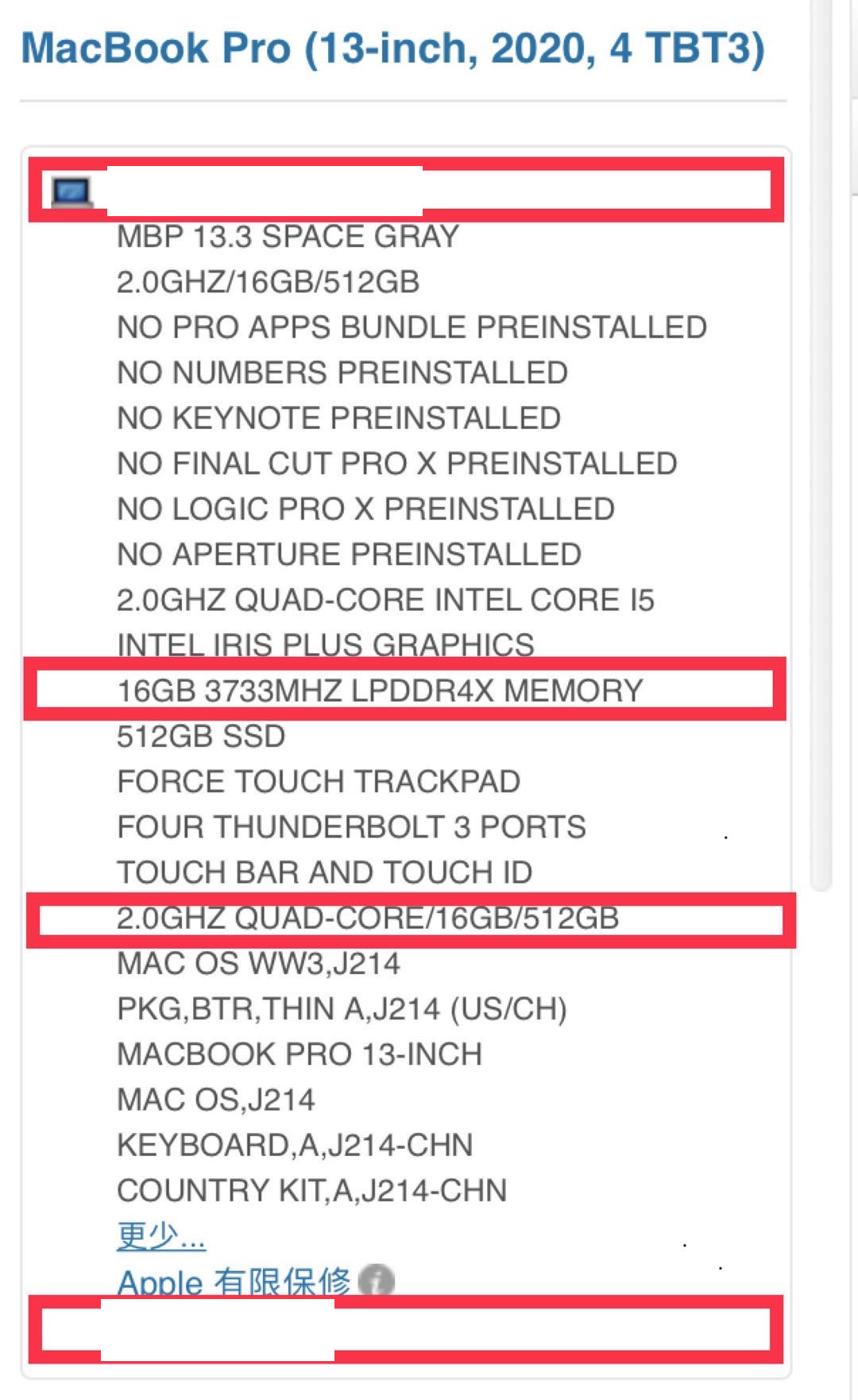 2020款MacBook Pro 13寸 A2251型号的内存与官网、包装盒还有苹果产品库显示的LPDD4X不一样, 本机内存显示 LPDDR4