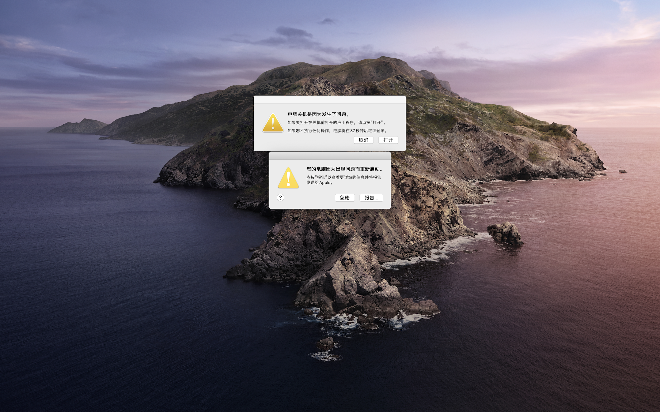 熄屏或者睡眠的时候会自动重启,每次打开电脑都是新开机的,都是因为出现问题而重启的,需要发送报告给Apple,之前版本的系统不会出现这样的问题。与技术人员线上交流,按照流程切换为安全模式启动,电脑开机时会花屏,然后会变得巨卡无比,安全模式下短暂测试,没有发生自动重启的问题,但是被告知很多软件在安全模式下是不能使用的,影响了正常的工作。目前切回到普通模式,仍然出现熄屏或者睡眠时自动重启的问题。无解?
