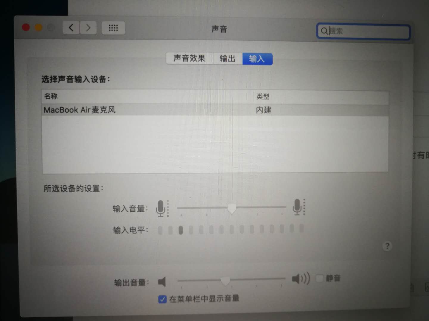 系统偏好设置中-声音-输入-》MacBookair麦克风 内建 时有时无,没有的时候Siri等 需要麦克风就无法使用。