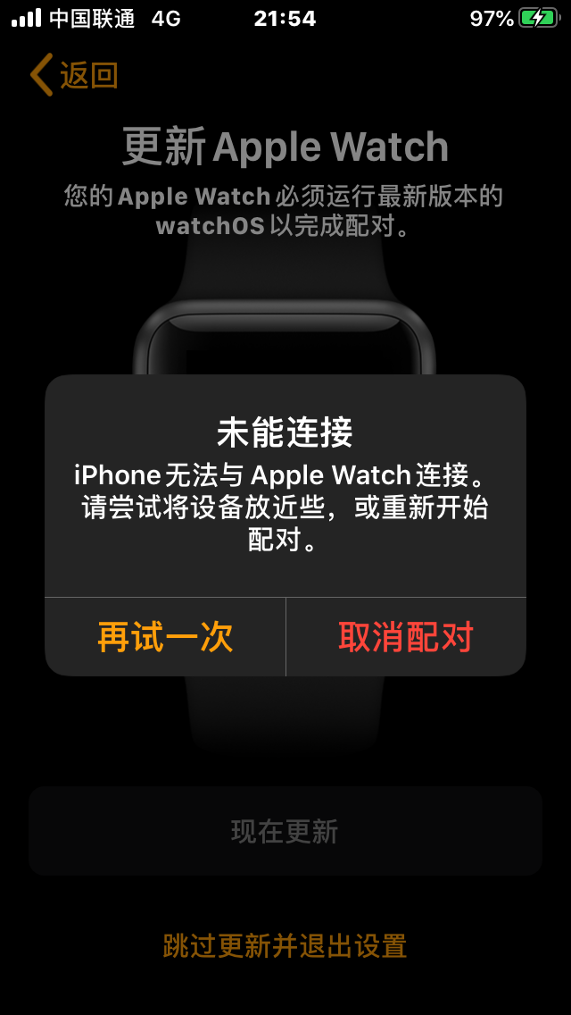 首先,感谢 shmily 提供的建议和技术文档。请问您是指无法更新 Apple Watch 并与 iPhone 连接配对,是吗?如果是的话,作为补充,您也可以尝试以下操作步骤:
